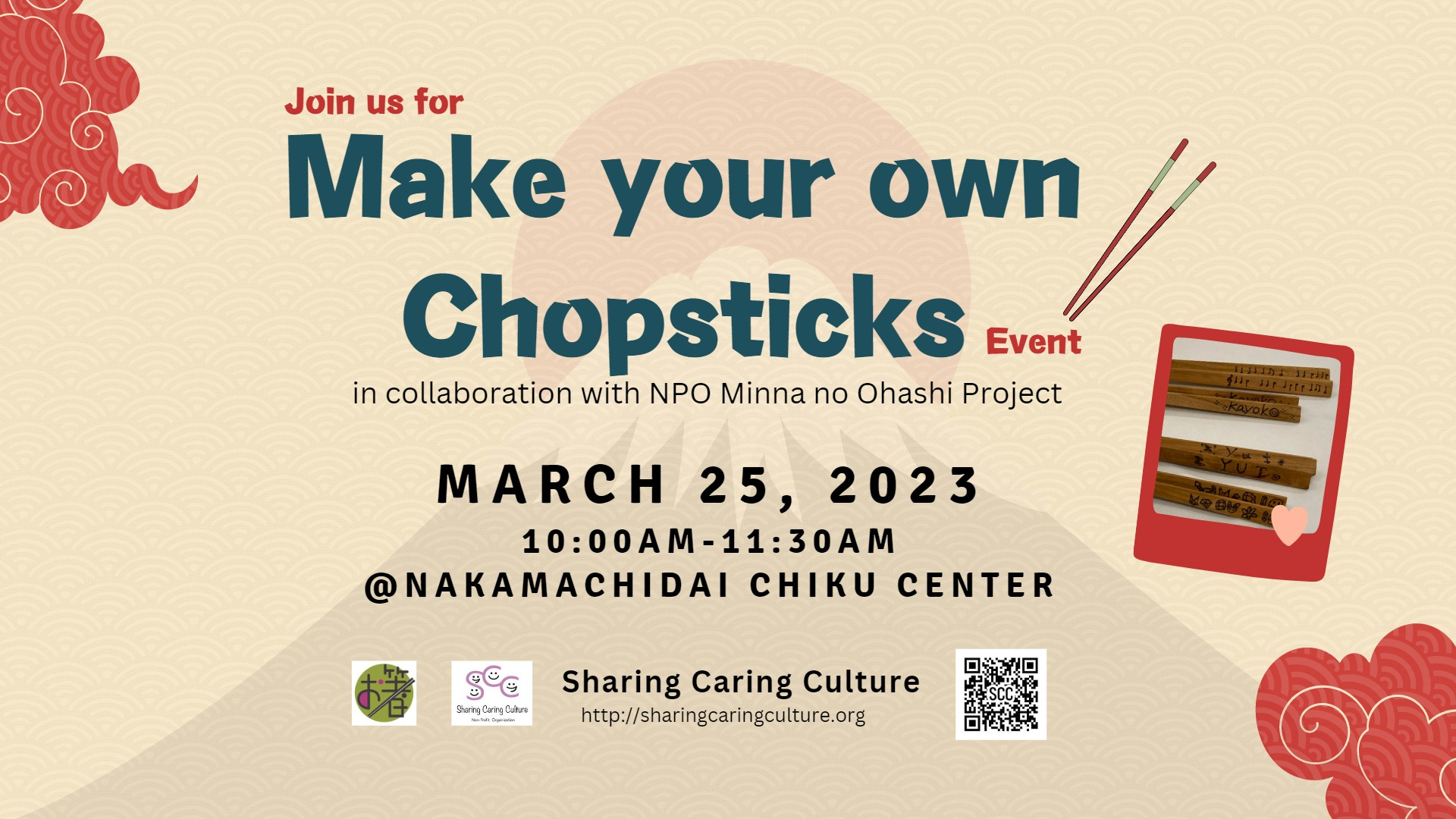 【終了致しました】3/25 Chopsticks making workshops for kids